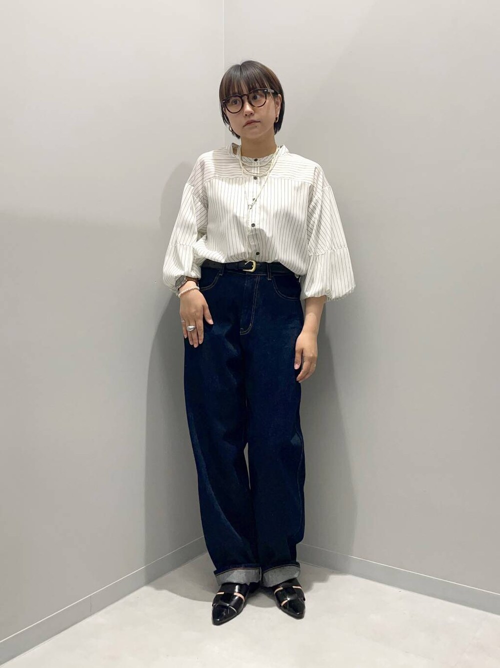 kinaco(GLOBAL WORK Smile Seed Store イーアス高尾)のデニムパンツ「GOODデニムバギーパンツ/118365」を使ったコーディネート