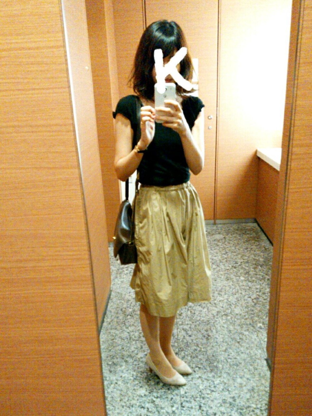いつぞやのTシャツと好きな無印スカート 仕事終わりに焼肉なので、飛び跳ねても大丈夫コーデ 足むくみたおしてる°・(ノД`)・°・
