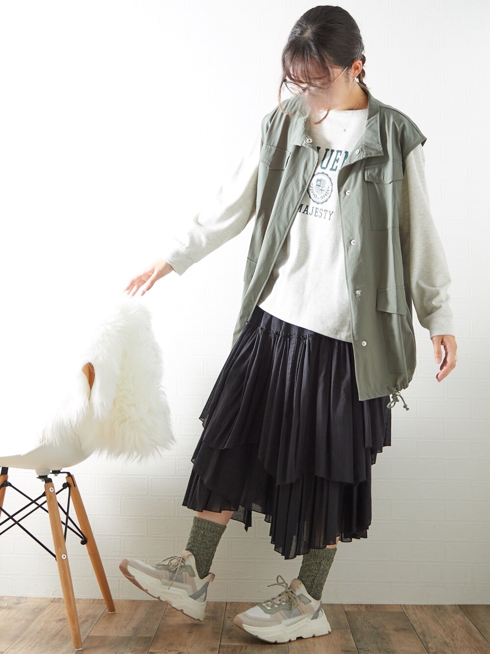 きなこちゃん(nissen本店)のスカート「ドラマティックティアードスカート」を使ったコーディネート