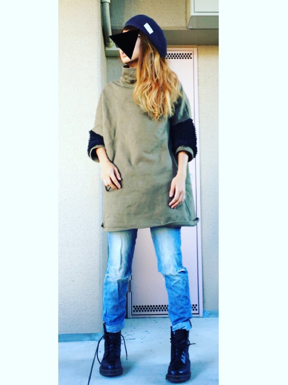 cucuriのドロップになったサンプルを着用。袖のチクチクは有松絞の蜘蛛絞りという技法です。製品は絞りとボディーが同系色になりました。 裏起毛であったかい🎶 http://www.cucuri-shibori.com