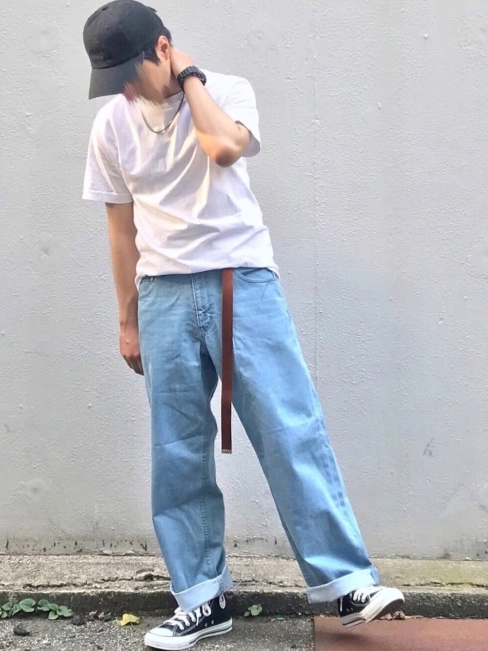 こんにちは😃 今日はjunRedのワイドデニムパンツを使ったコーディネートです👏 これほどの極太ワイドデニムを履いたことはなかったのでちょっと挑戦だったのですが、色味も良く履きやすくてとっても良かったです❗️ 〜コーディネート解説〜 ワイドデニムを履いてるのでトップスはジャストサイズにし、タックインをして少し個性を出しました💪 そして、帽子や時計や靴で黒を足して青白黒の3色コーディネートにしてガチャベルトで差し色を入れました❗️ 今年はガチャベルトはトレンドではないですが、僕はこれからもどんどん使っていきたいと思います😁 サイズ トップス M パンツ S 靴 26 過去のコーデも見ていってくれると嬉しいです👍