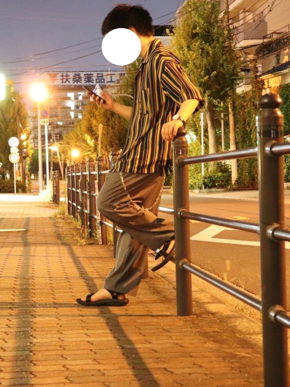 こんにちは😃 今日は珍しく外撮り🙃 投稿は昼ですが、写真は夜です😅 夜は街灯などが綺麗だと思い夜に撮ってみました❗️ 〜コーディネート解説〜 グレーのパンツって、意外と着回しが効くアイテムで特に無地だとより色んなアイテムに合うので1着持ってて間違いないパンツだと思います❗️ トレンドのストライプシャツをメインとして着たかったので、他のアイテムはシンプルにしウォレットチェーンで少し個性を出しました👌 サイズ トップス M パンツ S 靴 26 過去のコーデも見ていってくれると嬉しいです👍