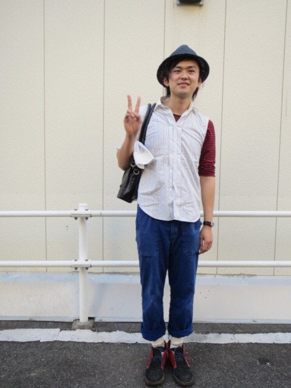 帽子 バルール シャツ soe パンツ used 靴 パラディン シャツは方にボタンが付いていて 取り外し可能になってます マリンぽくしてみました!