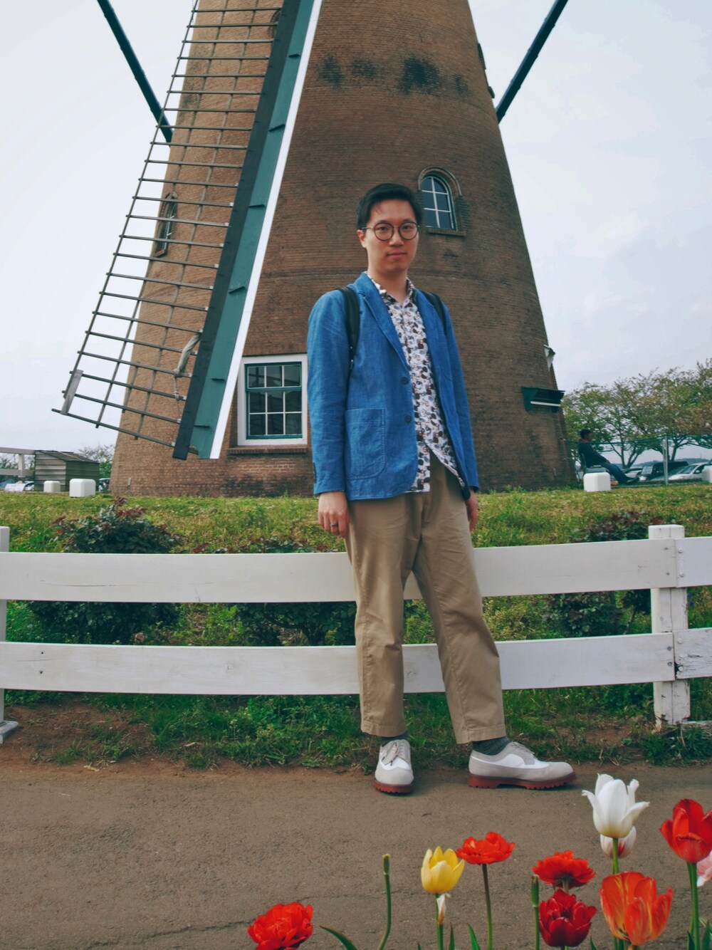 佐倉のチューリップフェスタに行きました! ユニクロ&JWアンダーソンコラボ! ジャケットの青はオランダのイメージかなぁと思ってコーデを組みました! ヴィンテージのマーチンも大好き!