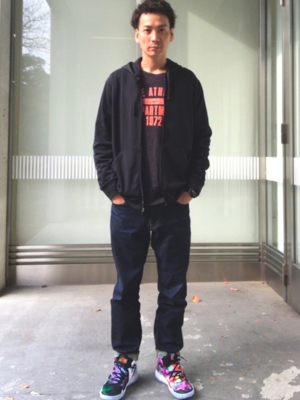 シンプルコーデです。 古着のヴィンテージスウェットにピントを合わせて、kicksを柄物に、他は暗目の色を選び、大人カジュアルぽくしました。 前回も同じkicksを載せたのですが、着ている服がシンプルだと、足下が目立ちますね。 モデル着用品は 赤猫堂 (古着屋)by BASE にて販売中 プロフィールからサイトへ移動して下さい。