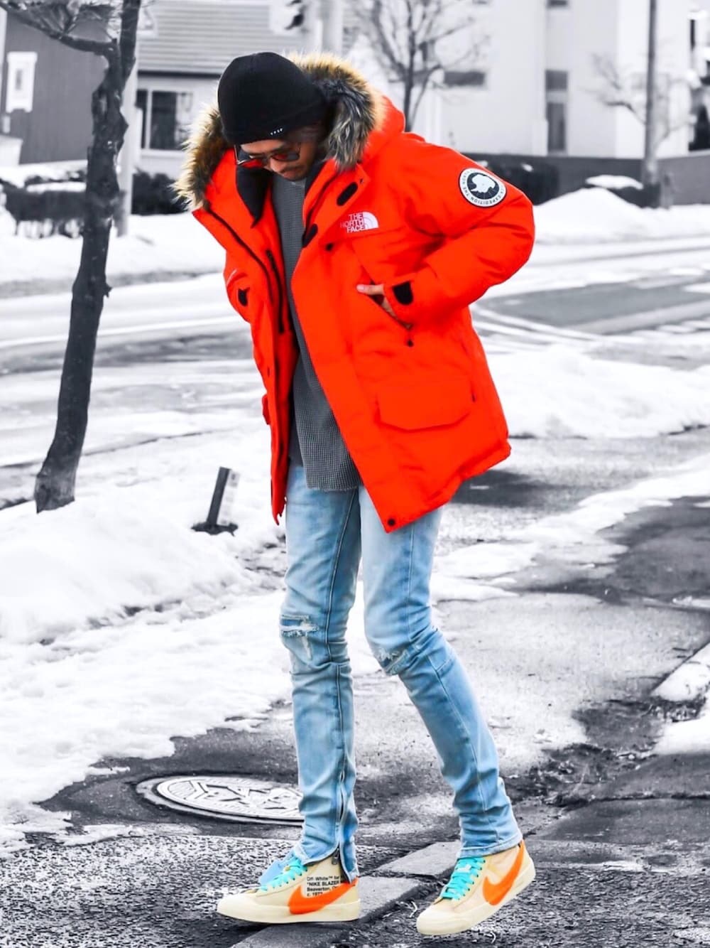 オレンジアンタークティカとブレーザーを合わせたかっただけのコーデ🙄 インナーは黒でも良かったかも🤔