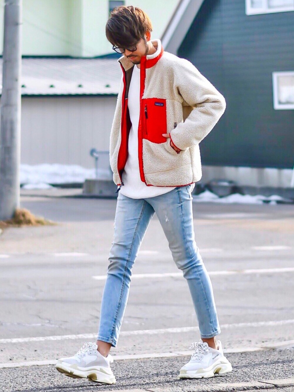寒さはレトロXでカバー トリプルSはスキニーによく合いますね👌