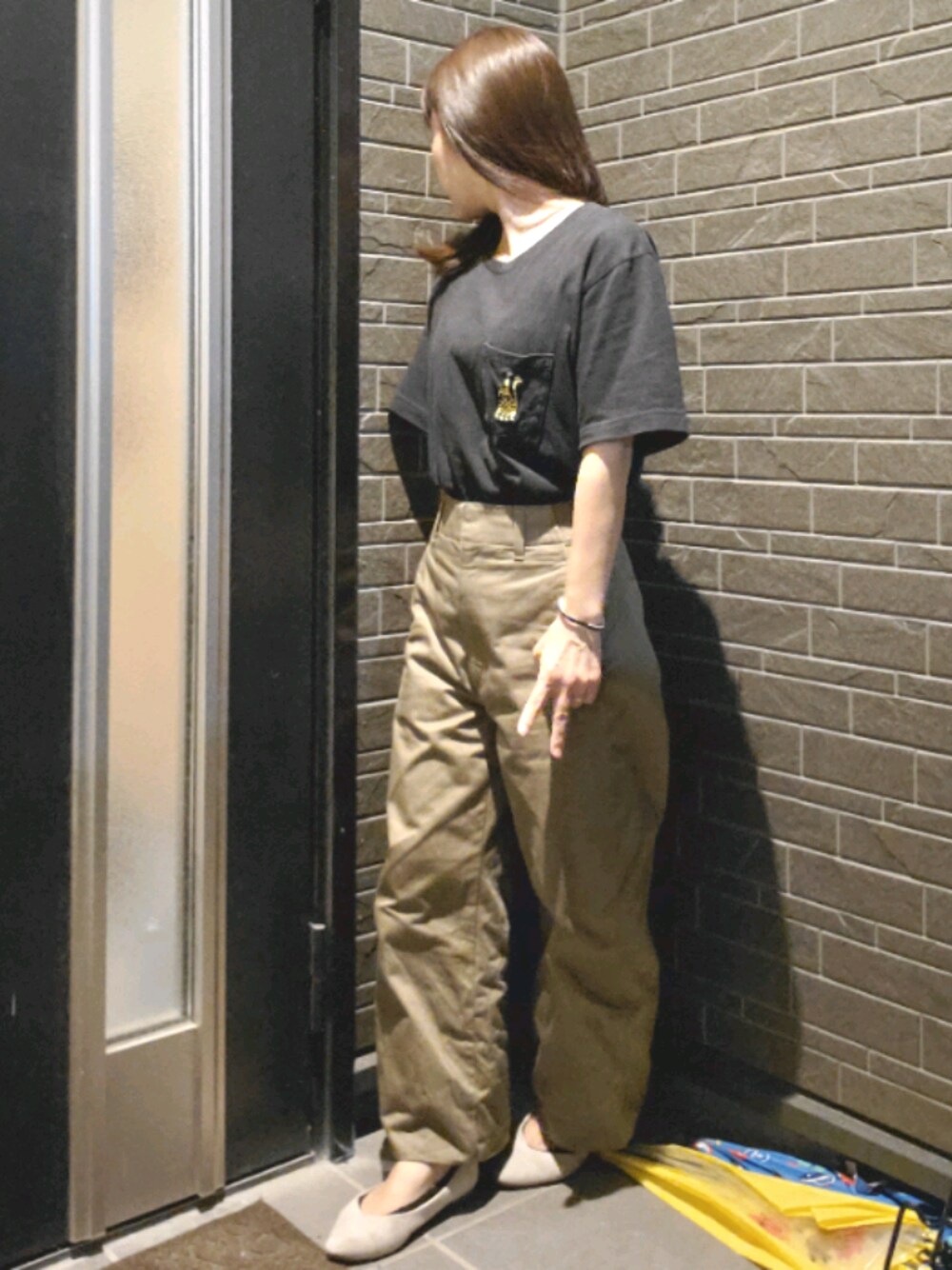 usaのパンツ「ワイドフィットカーブパンツ 790円 55cm」を使ったコーディネート