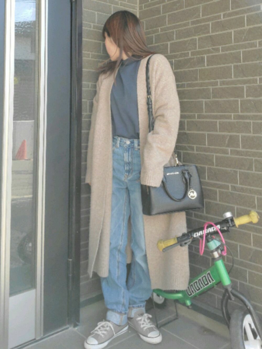 閲覧、♡、お気に入りありがとうございます(^^) UNIQLO スフレヤーンベルデッドロングニットコート s 1990円 GU テーパードアンクルジーンズ XS 590円 ソフトコットンハイネックT s 590円 CONVERSE オールスターミュールスニーカー 23cm 3800円 MichaelMichaelKors カミーユスモールサッチェル 28000円くらい