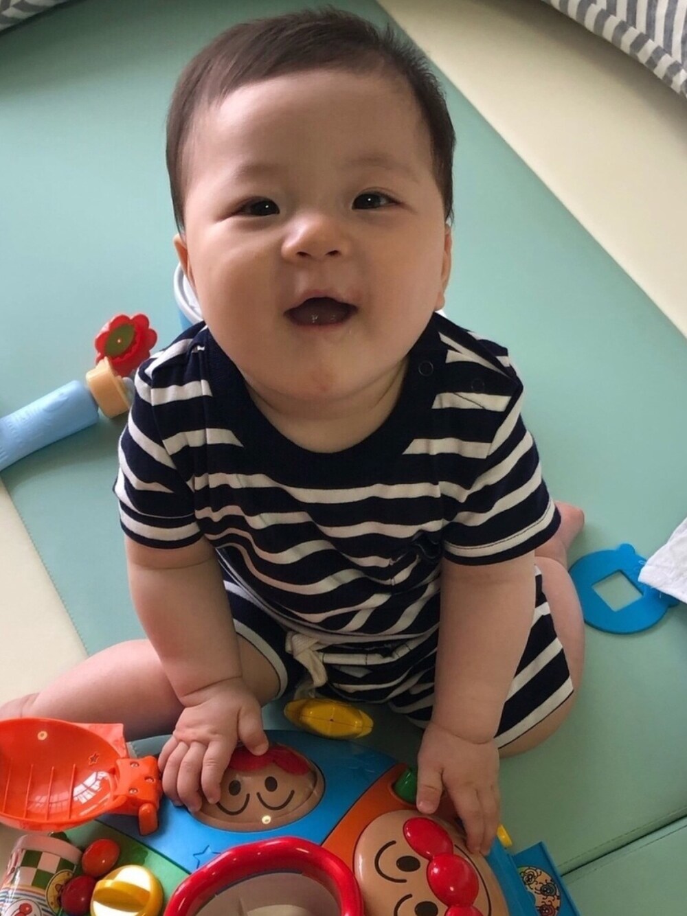 GAPのボーダーロンパースとパンツをセットアップで。 女の子なのに、男の子みたい(笑) サイズは12-18M(80サイズ)です。