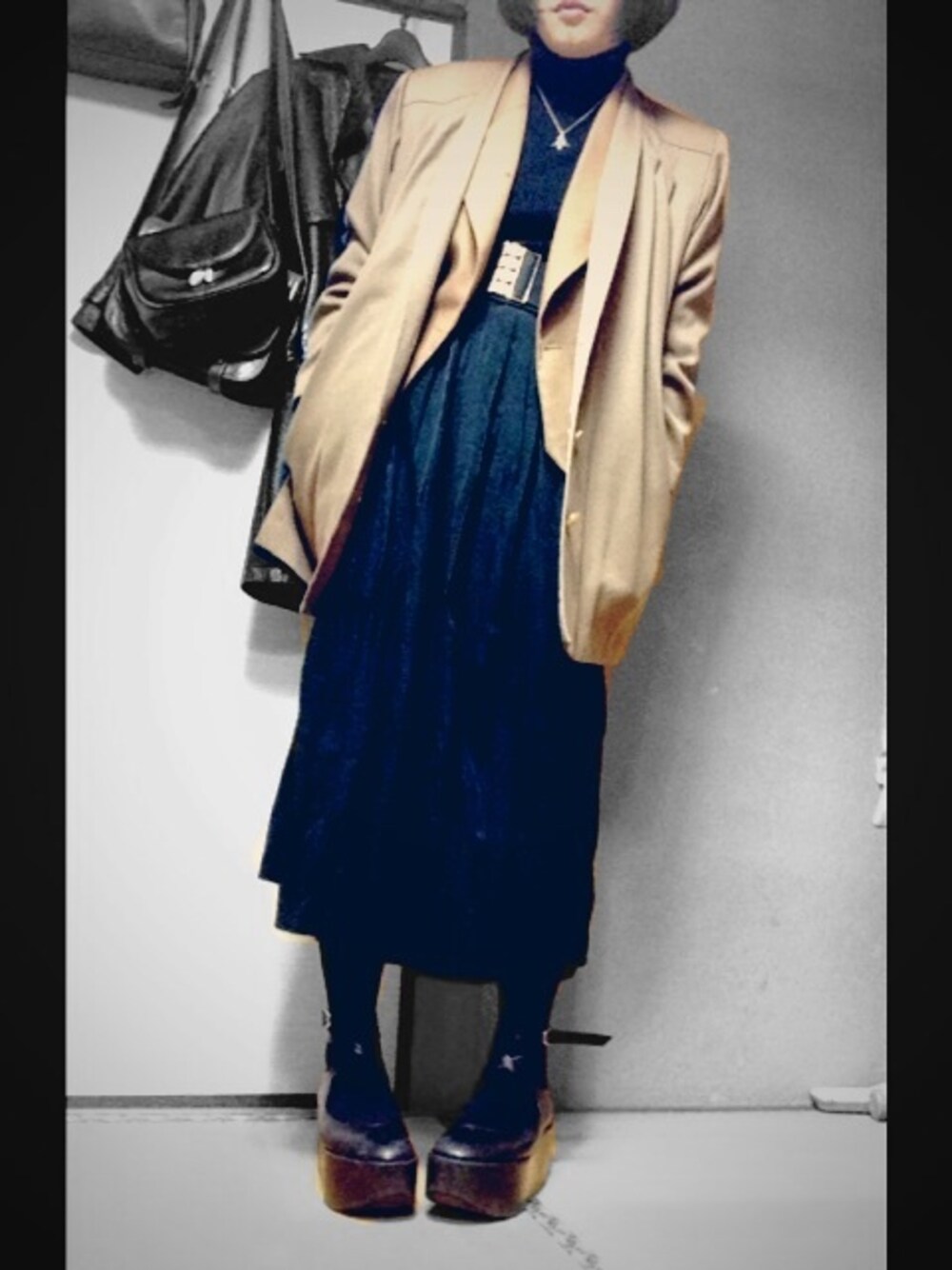 インナー:UNIQLO ネックレス:vivienne westwood ベルト:used ジャケット:used コート:used スカート:used 靴:BOPPER