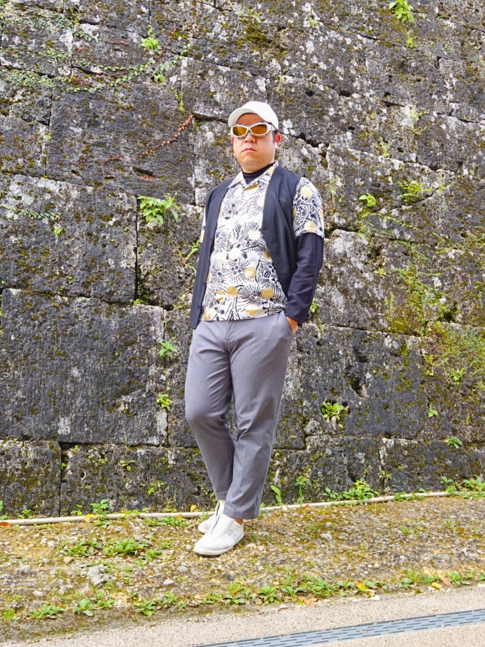 沖縄の伝統工芸品:琉球紅型(びんがた)を活用した柄シャツ「語れるシャツ」にFACTORY900のメガネを合わせてみた。