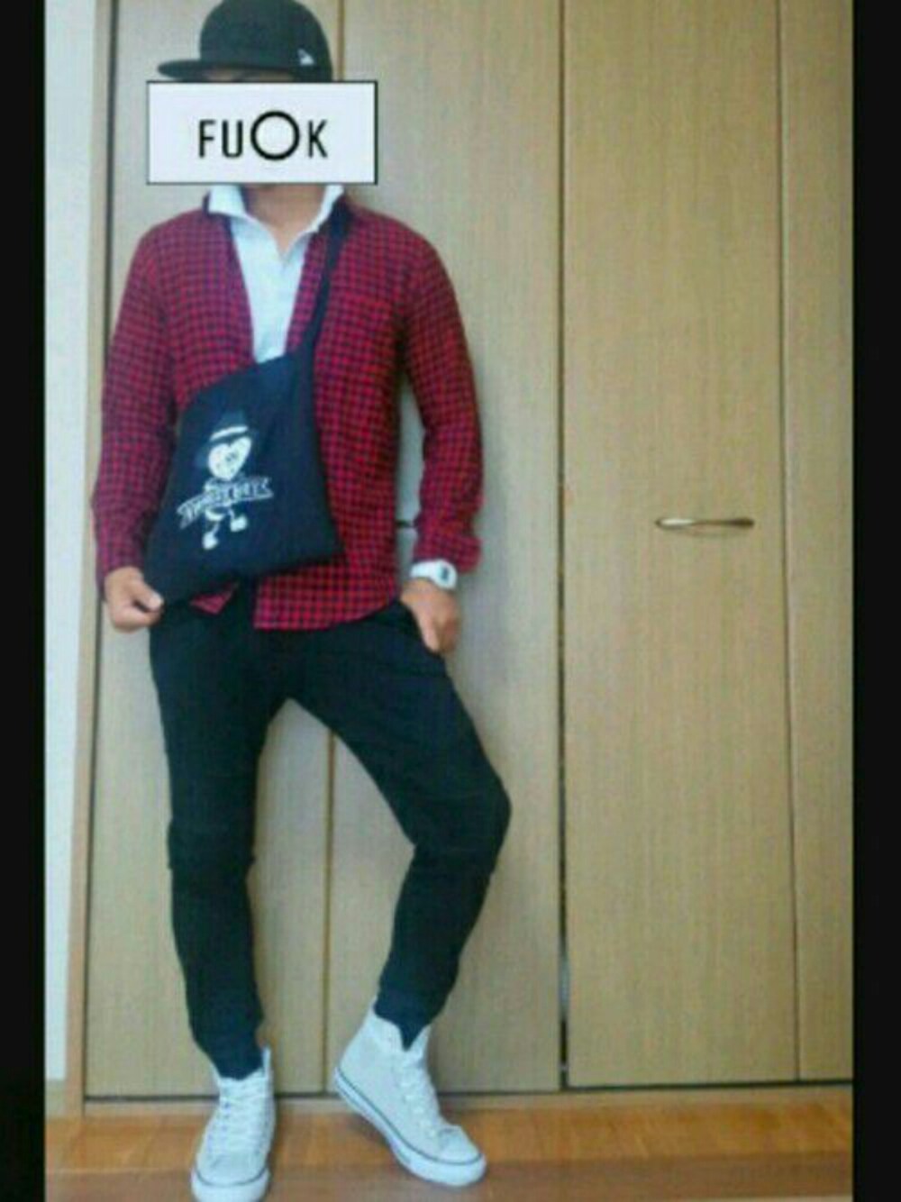 秋っぽく赤のチェックのシャツ着ました🍁 スニーカーはconverse TOKYOの一周年記念モデルです 今しか買えないと思うしスウェードで高級感もあり、色々とこだわりが見える一足です👟 そしてバックはSENSEという雑誌の十月号の付録で、デザインも可愛くお気に入りです♪