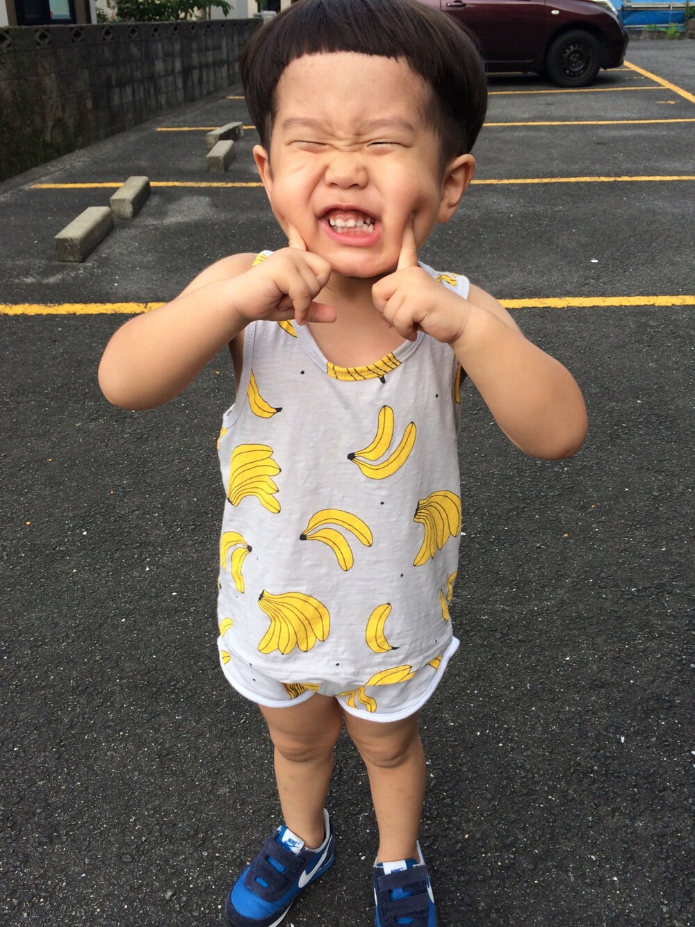 バナナんバナナんバーナーナー🎶 好きな食べ物はバナナです🍌笑 子供のセットアップかわいすぎる。 何歳までいけるんだろう、、、、