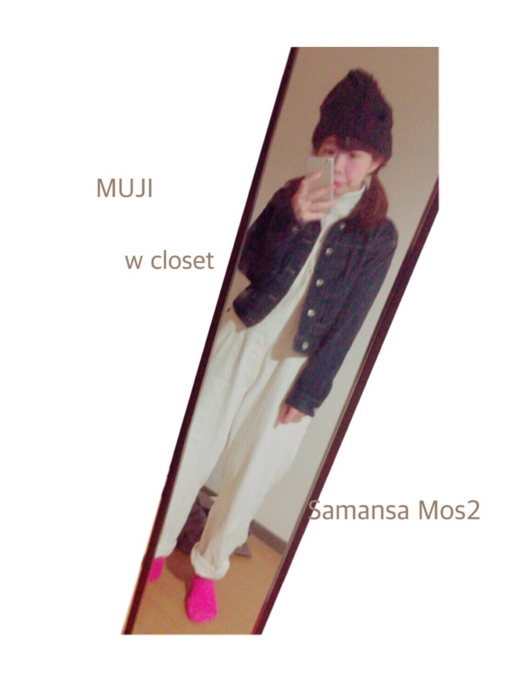 お洋服が床に散らかりすぎたので、少し加工をしました😂真っ白タートルに真っ白オーバーオール。小物やアウターは色を入れてメリハリをつけました。