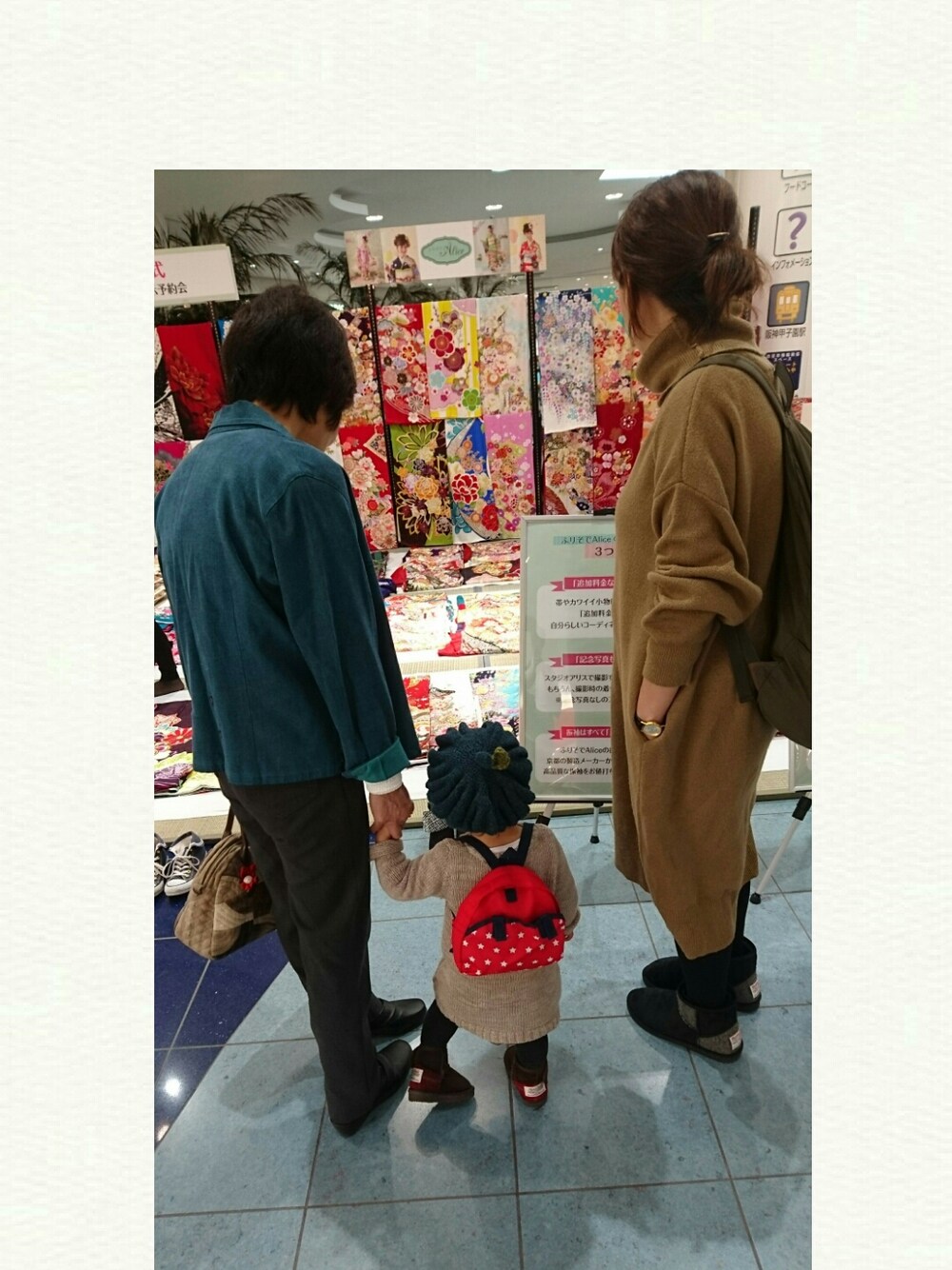 三世代ショッピング。 成人式の着物売ってました! これを着るのは…18年後? ワンピースがとっても楽です。