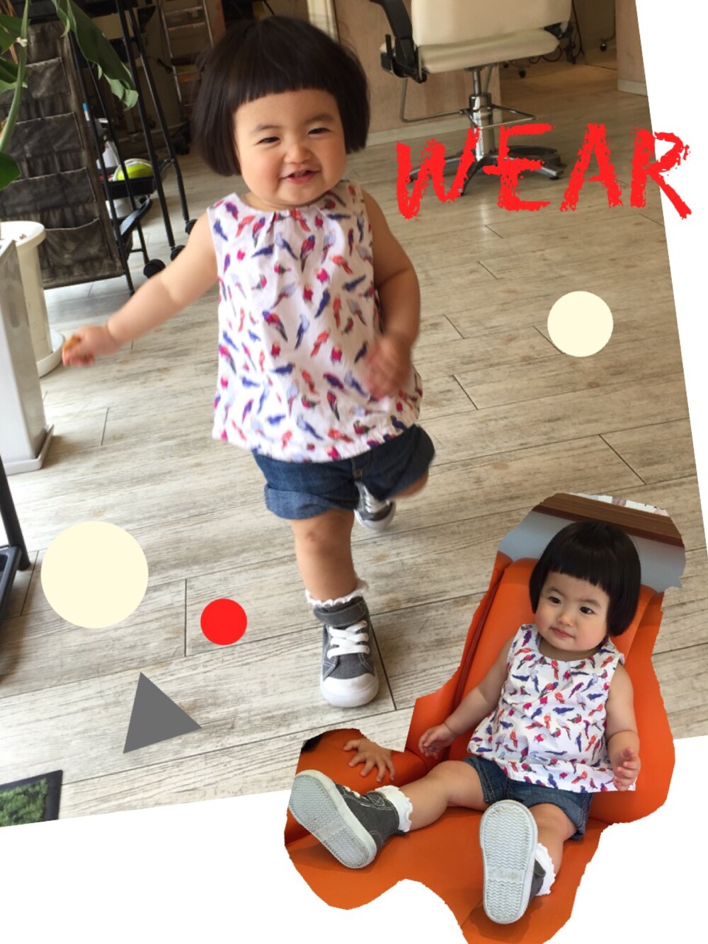 元気娘久々にアップ。 親戚の美容室で父ちゃんの散髪にお付き合い❤︎ おかっぱが少し伸びてきた。