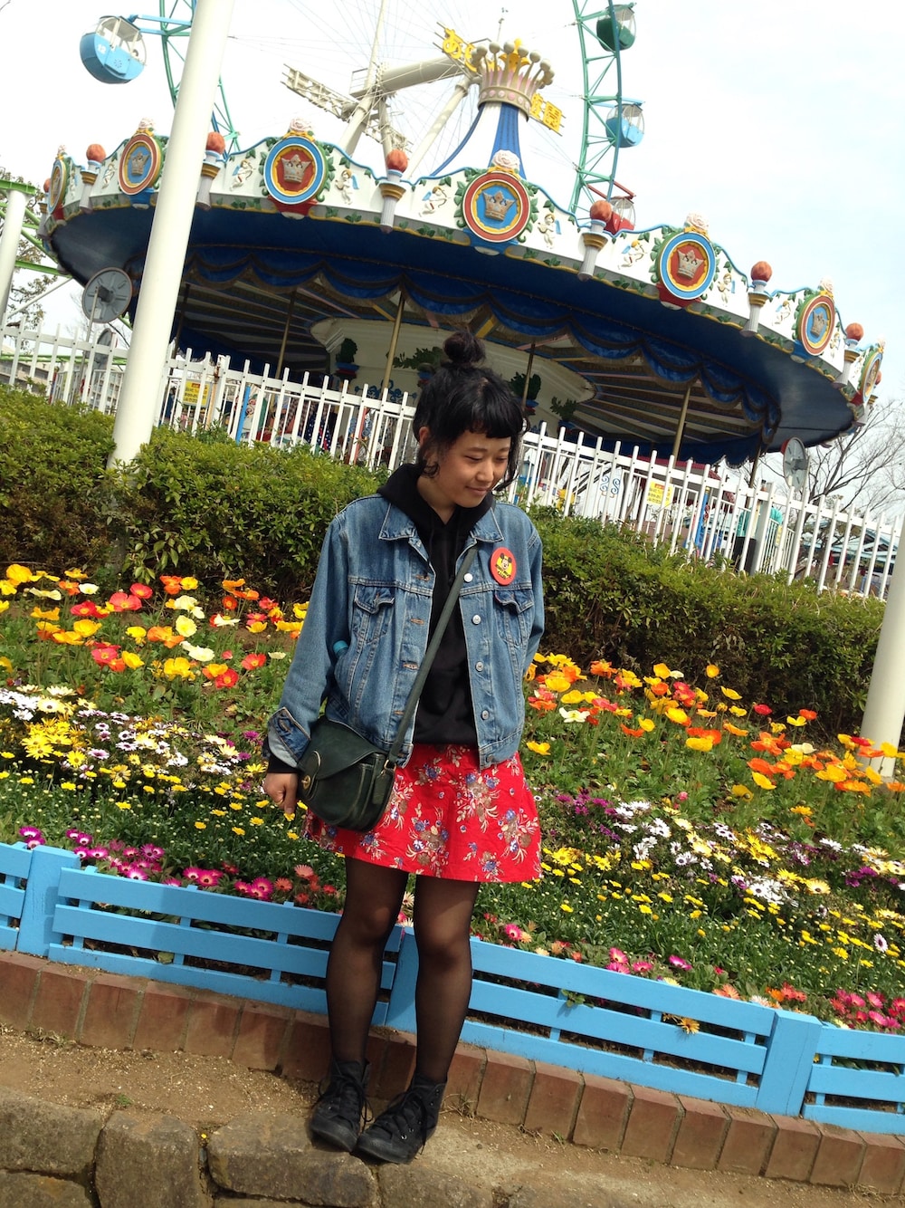 パーカー以外、ぜんぶ古着! 緑のバッグにしたわけは、 スカートに緑が入っているから。 あじフライ、うまかったんだなー