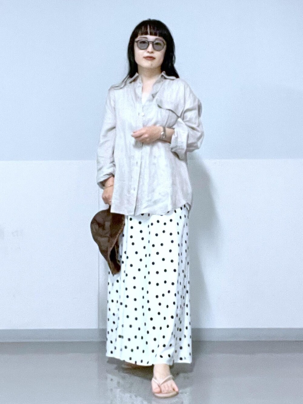 スカート/トップス/シャツ/:フリーサイズ シューズ:36 ハット/アクセサリー:フリーサイズ サングラス:IZIPIZI(銀座店にてPOPUP開催中) 雨の季節も気分を盛り上げてくれるドット柄。 トップスを露出抑えめにして、大人なドットスタイルにしてみました。 ⬛︎お知らせ⬛︎ ↓下部にある“♡お気に入りに追加”をタップして頂くとお気に入りバーに追加され後から見返すことが出来ます。 “♡フォローする”もタップ頂けると励みになります♪ SALON adam et ropé 東急プラザ銀座店 B2F 03-6264-5910 11:00〜21:00 ↓LINEでもお気軽にお問い合わせ下さい♪ <a href="https://lin.ee/bqFADFq" style="background:url(https://scdn.line-apps.com/n/line_add_friends/btn/ja.png); background-size: contain; display: block;width: 116px;height: 36px; margin:.5em 0;"></a>