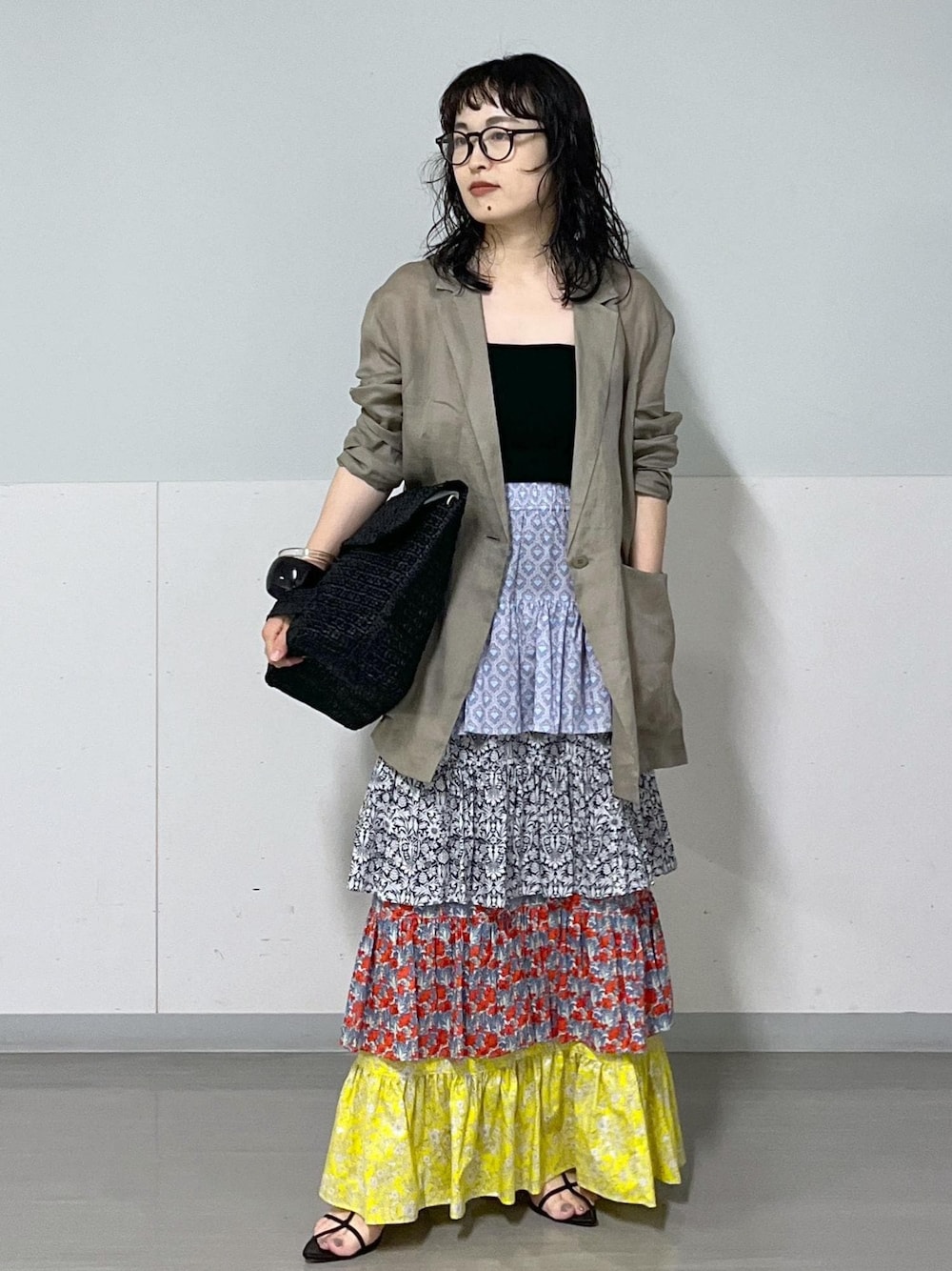 シューズ:36サイズ ジャケット:Sサイズ 華やかなリバティ柄のスカートを ジャケット合わせで辛めにまとめてみました。 今ならリバティアイテム含む ¥33,000以上お買い上げの方に 素敵な巾着をプレゼントしております。