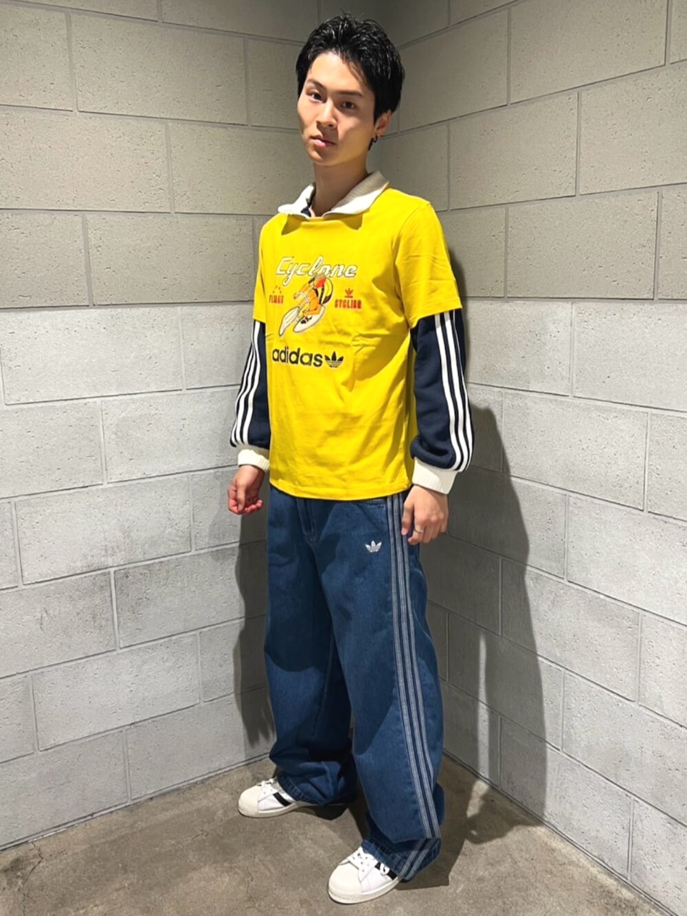 FA(アディダス ブランドコアストア 京都)のデニムパンツ「アディカラー デニム スリーストライプス トラックパンツ / アディダスオリジナルス adidas Originals」を使ったコーディネート