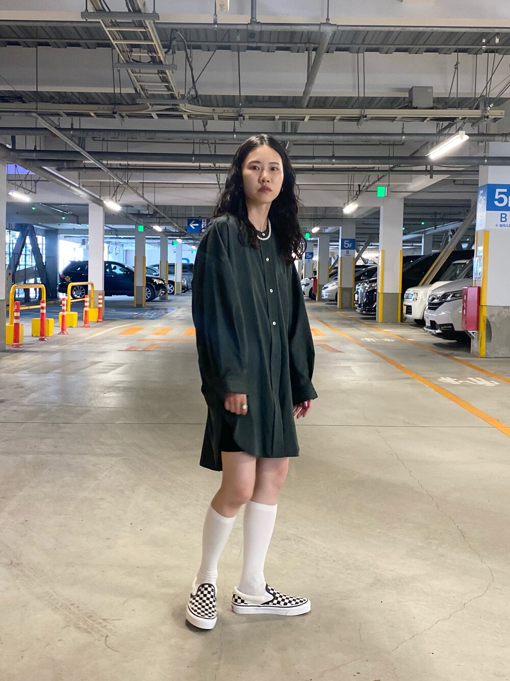 オーバーサイズでざっくり着れるシャツ。ワンピースっぽく着たかったので、ハイソックスでバランスを取り、スニーカーでカジュアルな印象に。後ろ姿がとても可愛くて、わたくし即購入したアイテムです。 【着用アイテム】 ▷ストライプヨークギャザーシャツ サイズ感:オーバーサイズで、寒い時期には中に着込める余裕があるくらいです。袖口もゆったりしているので、ラフにさらっと着られるのも◎ 着心地:インナーにタンクトップを着て羽織りとして、閉めてざっくり着るなど、着回し力もあります。暑い時期からでも取り入れやすい素材なので、夏物は一通りお揃いの方いかがでしょうか?