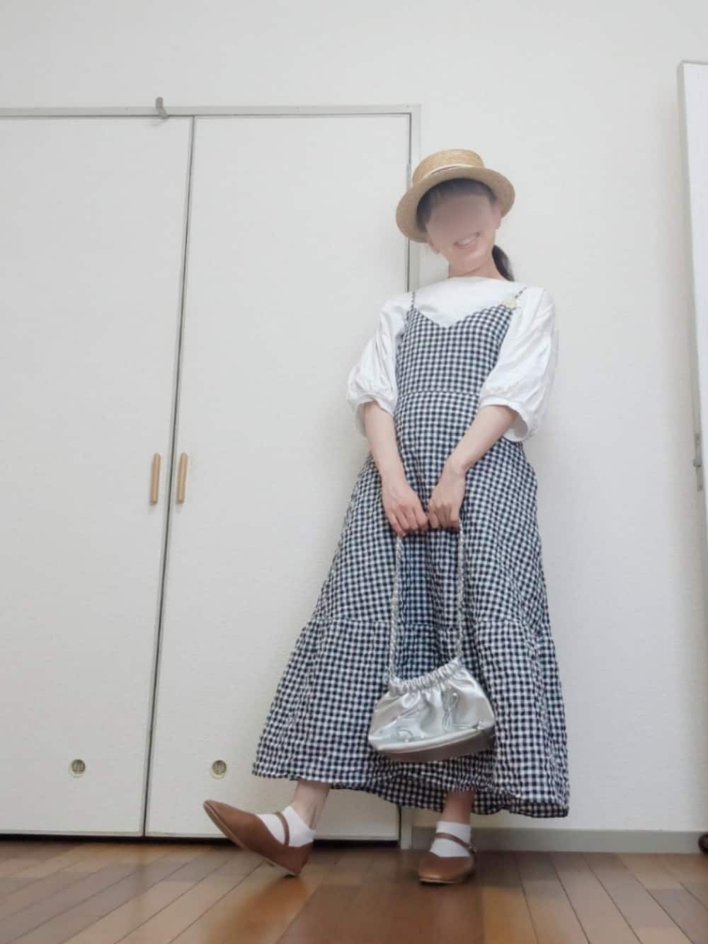 本日のコーデ✨ 今日はこの間セカストで購入したギンガムチェックのキャミワンピを使ったコーデです これ激安で500円で購入しました 中々良い買い物でしょ🤗 肩紐のところにさりちゃんハンドメイドのぷっくりマーガレットをつけてみました 毎日暑くて嫌になるね🥵 今年は梅雨明け早かったから夏が長そうですね💦 今回はコメント欄閉じてます 皆さんの所もポチ逃げになりそうです😅 次回は開ける予定〜 前回は久しぶりの投稿にたくさんコメントありがとうございました😊 優しいフォロワーさんに恵まれてて嬉しいです 購入した夏服コーデアップしたいから 週2投稿目指します✨ いいねありがとうございます saveやフォローも大歓迎です コメント等感謝してます🤗