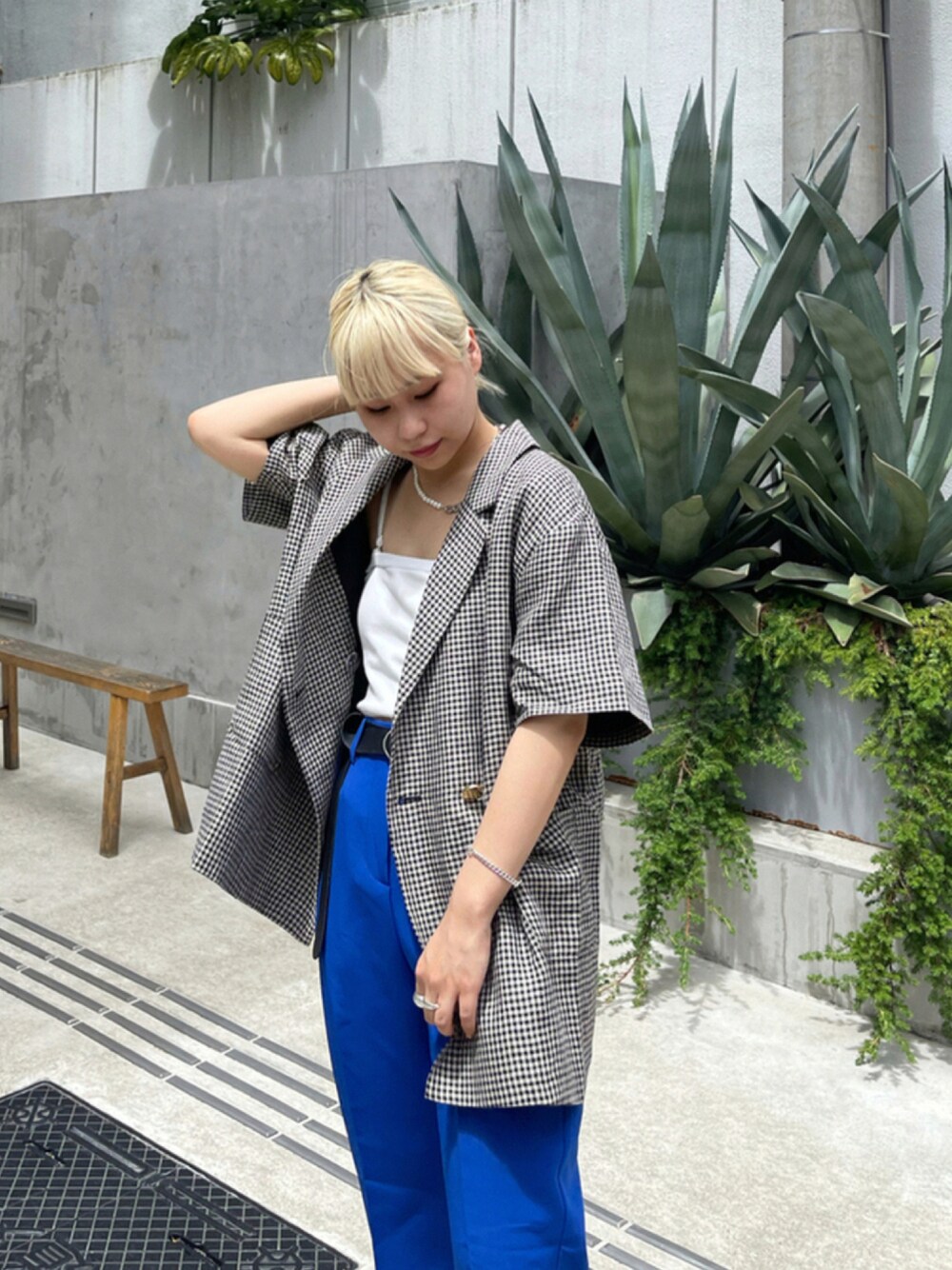 KINUKAのテーラードジャケット「チェックダブルジャケット」を使ったコーディネート
