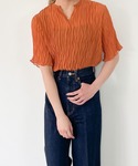 kiiのシャツ/ブラウス「半袖プリーツシアー楊柳Vネックブラウス」を使ったコーディネート