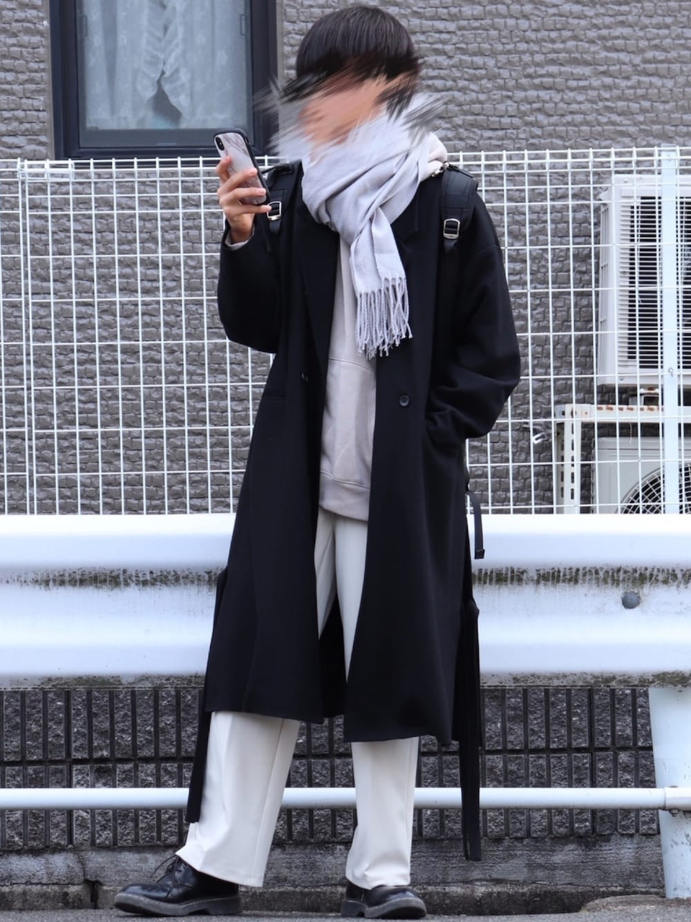 きおのチェスターコート「"dolman double Chester coat" ドルマンダブルチェスターコート」を使ったコーディネート