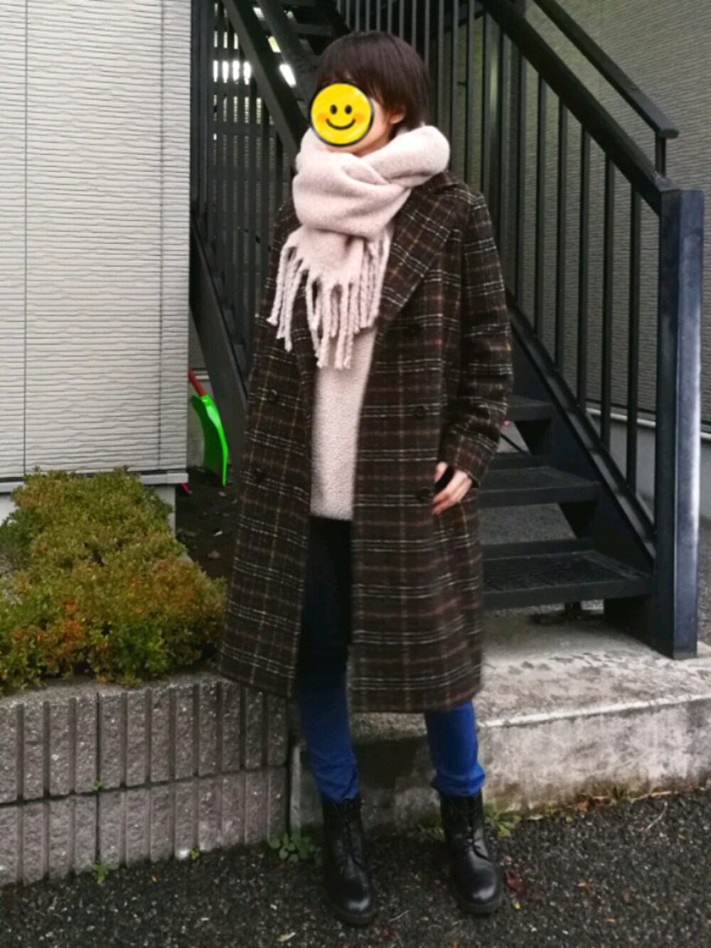 こんにちは✨😃 いいね👍お気に入り❤️フォローありがとうございます‼️ 今日は去年GUで買ったコート☺️着ていくと皆からほめらるし、GUだよって言うとビックリされる🧥マフラーぐるぐる巻きにして、Leeのスキニーにボアチュニック😃あったかコーデ☃️ 後ろの緑のスコップが妙に目立つ🗿笑