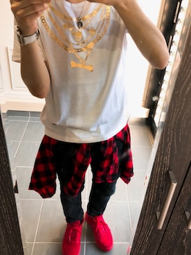 オシャレになりたーい!アドバイスお願いします( •̀ᄇ• ́)ﻭ✧ 最近は赤色のスニーカーがお気に入りなので似合うファッションを見つけていきたいなーと! 今あるものをうまく着回したい!
