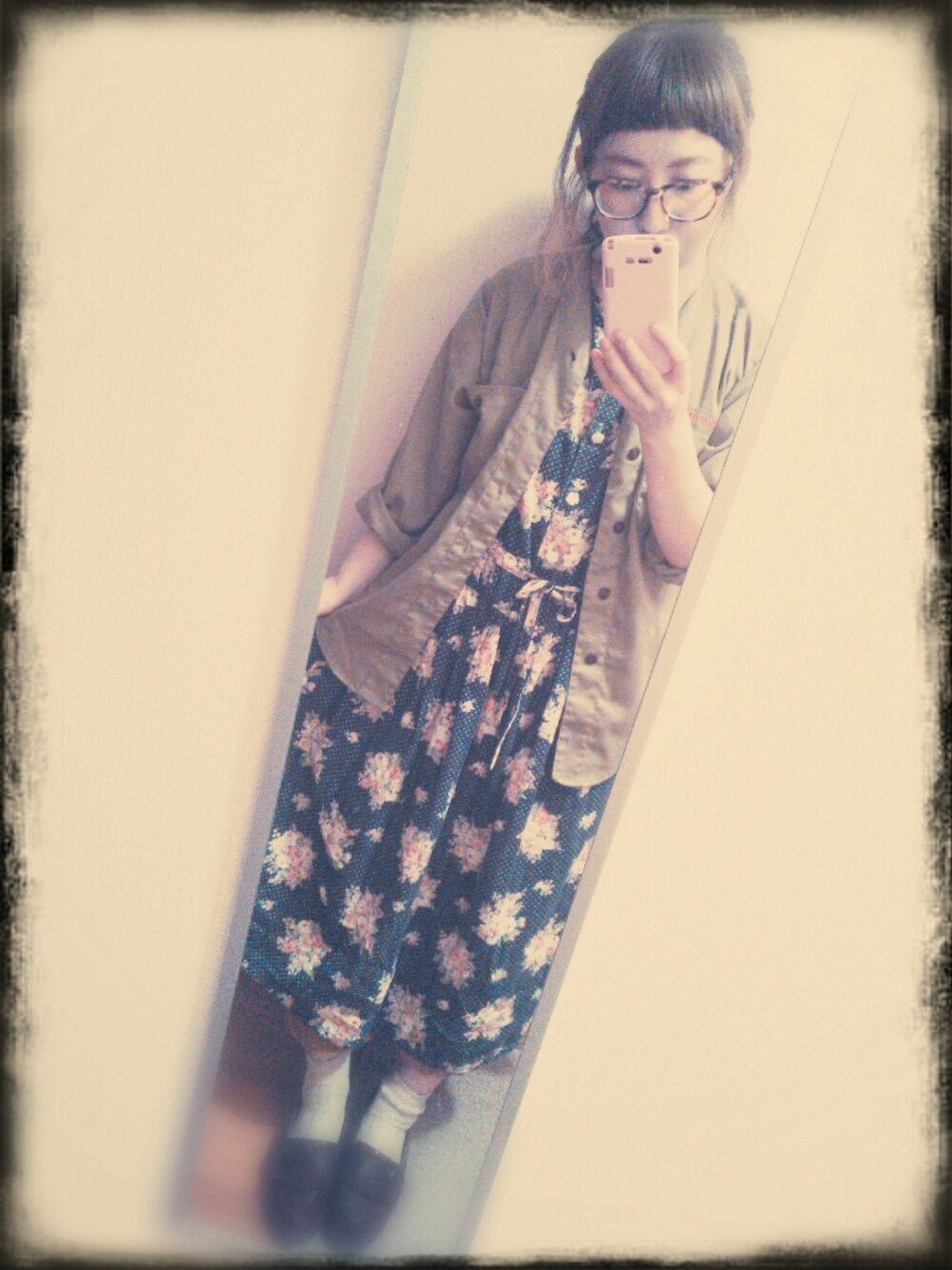 最近梅雨に入って雨ばっかりですね(>.<) 明日から晴れる予報みたい♩ この間買ったばかりの古着花柄ワンピ**! ちょっと涼しかったからミリタリーシャツ羽織ってシンプルにまとめてみました(´ー`*) 靴下はベージュで古着のフリンジ付きローファー履きました(*^▽^*)