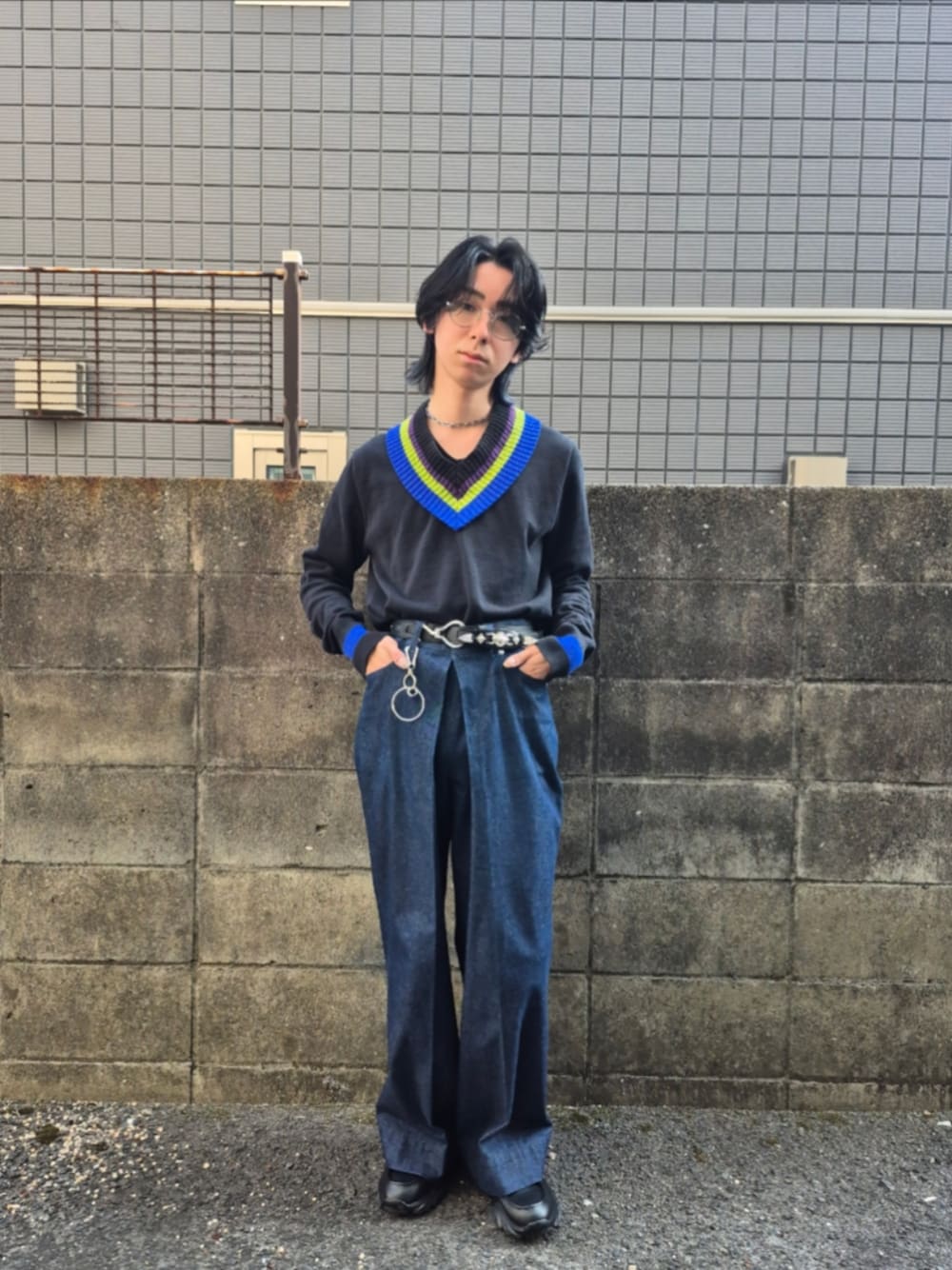 【Vネックニット×リジットデニム】