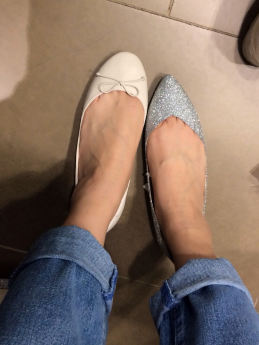 ホワイト系のバレエシューズを着用したレディースの春コーディネートの1枚目の写真