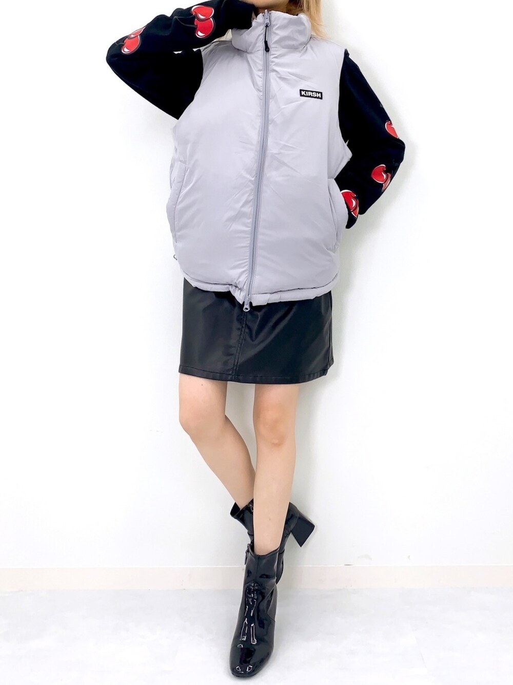 kirshのダウンベスト「SMALL CHERRY REVERSIBLE PADDING VEST/スモールチェリーリバーシブルベスト」を使ったコーディネート