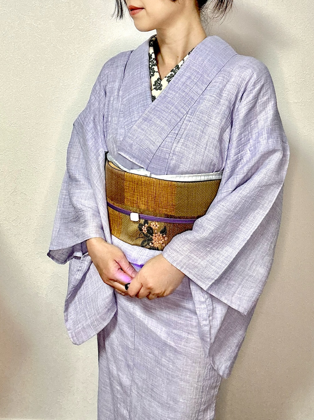 着物 麻 単衣 帯 八寸 半襦袢 ジュポネ 筒袖
