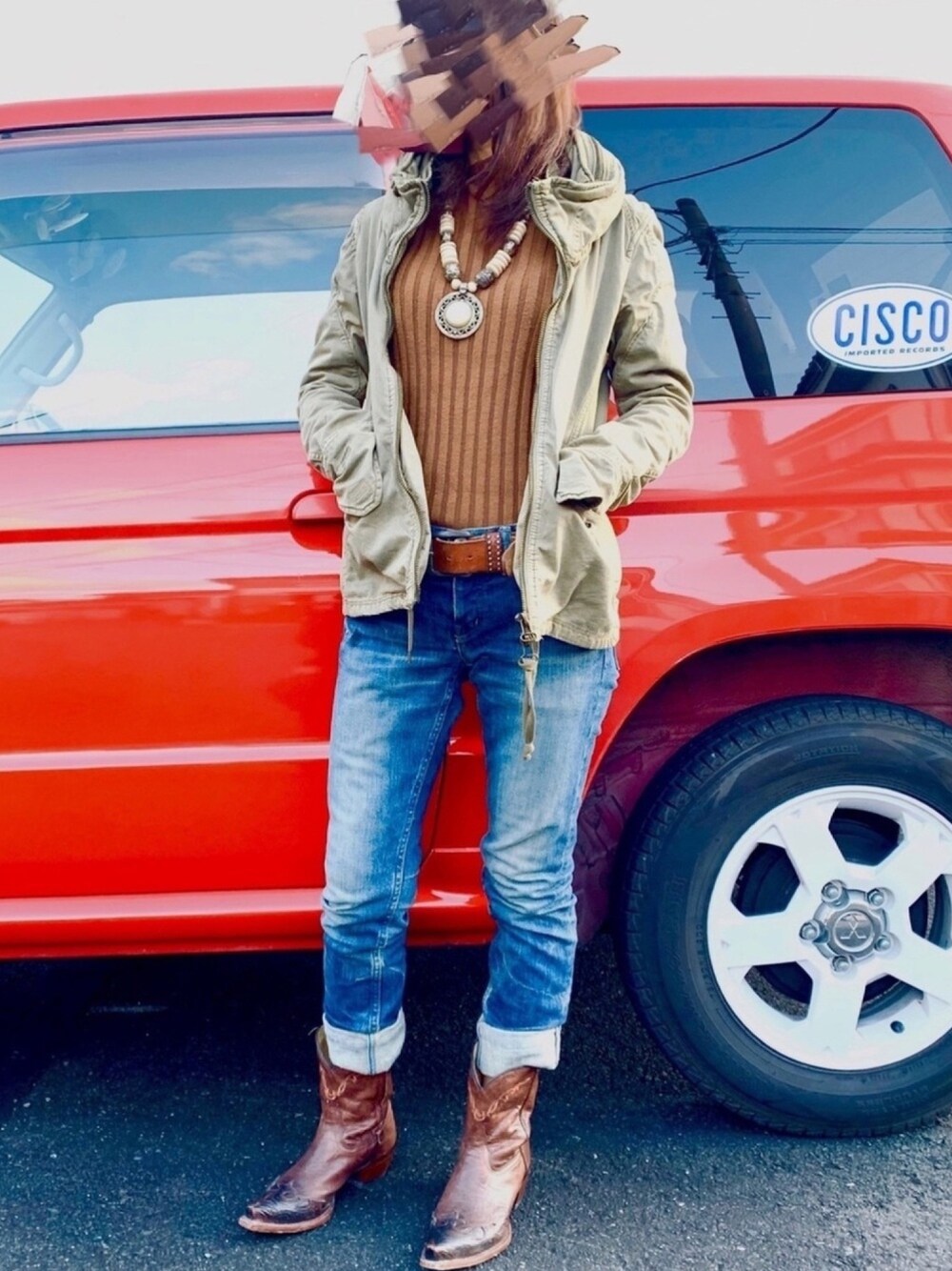 貴ieのブルゾン「綿サテン BIGフードジャケット」を使ったコーディネート