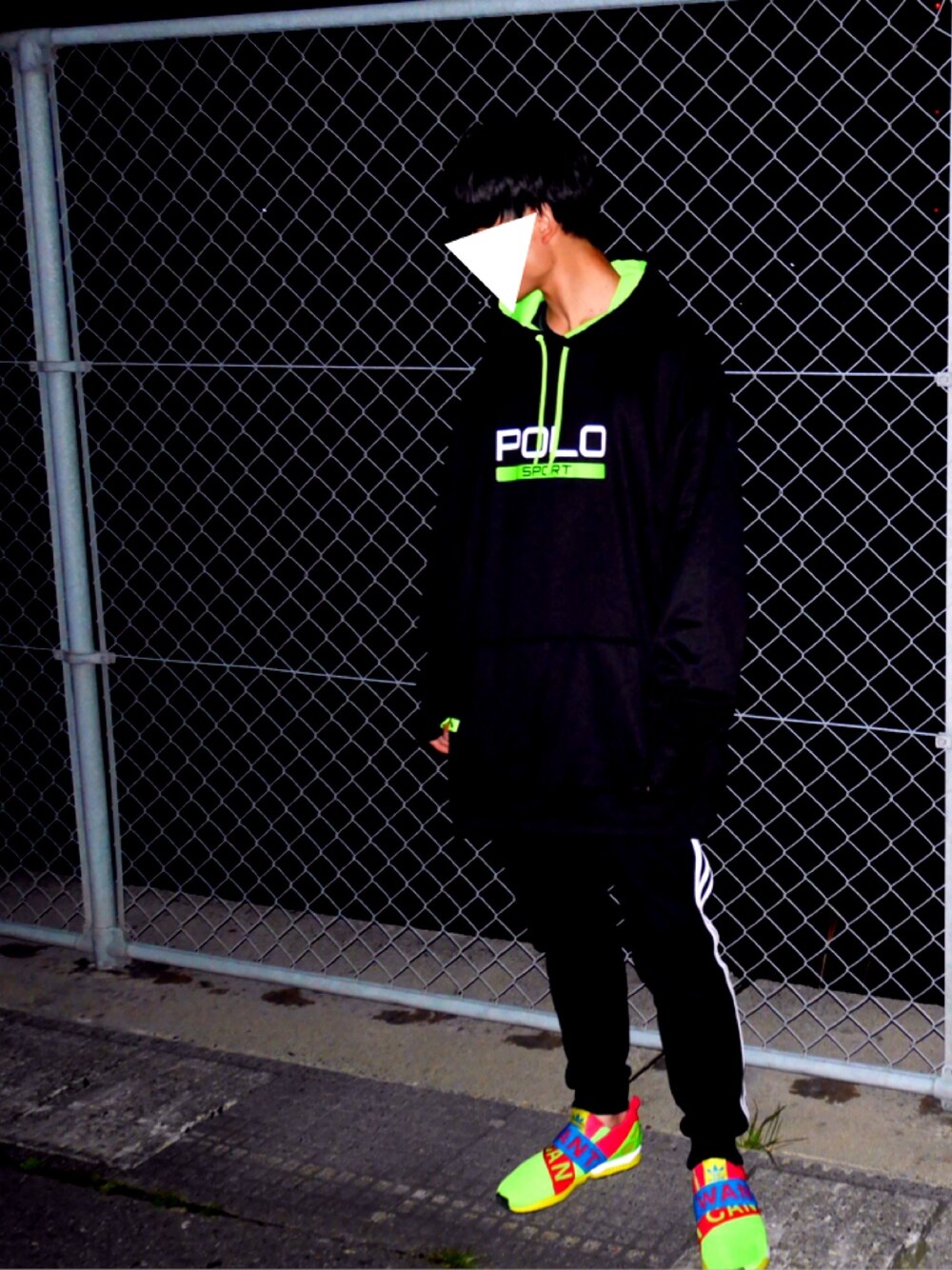 ポロスポーツのパーカーコーデ!! ネオンカラーで夜でも安心! よかったらフォローお願いします。
