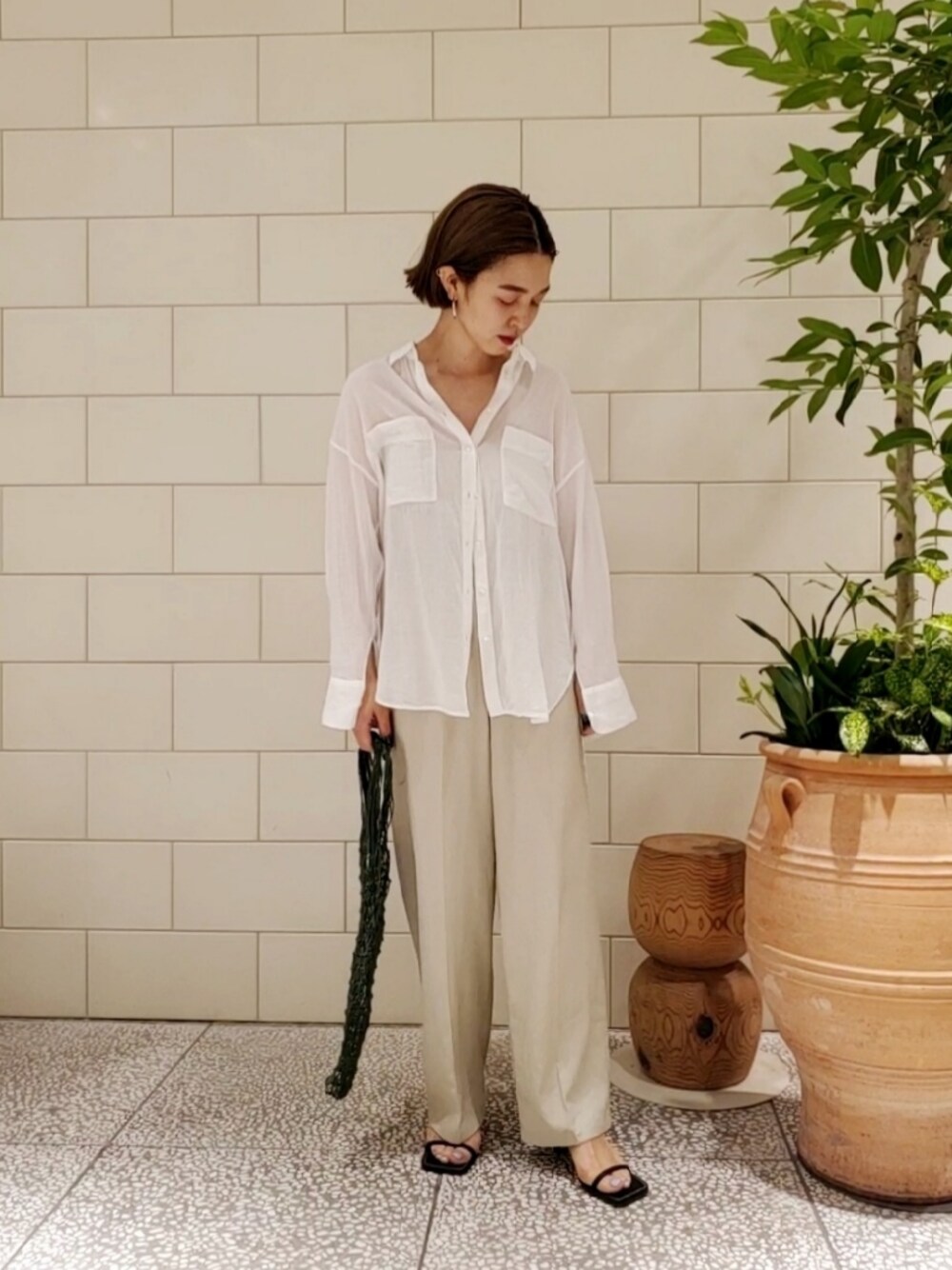 ゆるっとまとめた大人っぽい夏のスタイリングです。