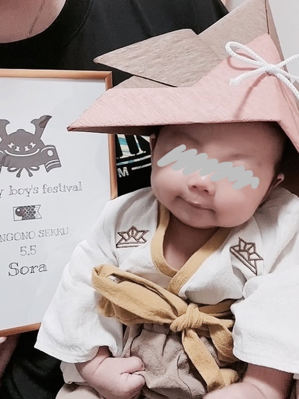 こどもの日🎏 3coinsの袴げとったよ✌️ カブトは折り紙🤠