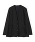 程よくオーバーシルエットでカーディガンのように羽織れるのノーカラージャケット。 同素材のパンツと合わせてカジュアルなセットアップスタイルにしました。