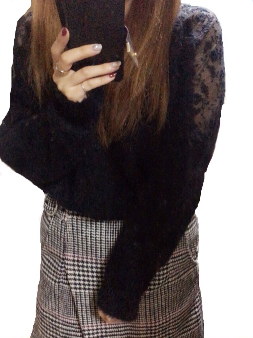 mii☺︎のニット/セーター「フェザーヤーン肩シアーレースニット-2017AW」を使ったコーディネート