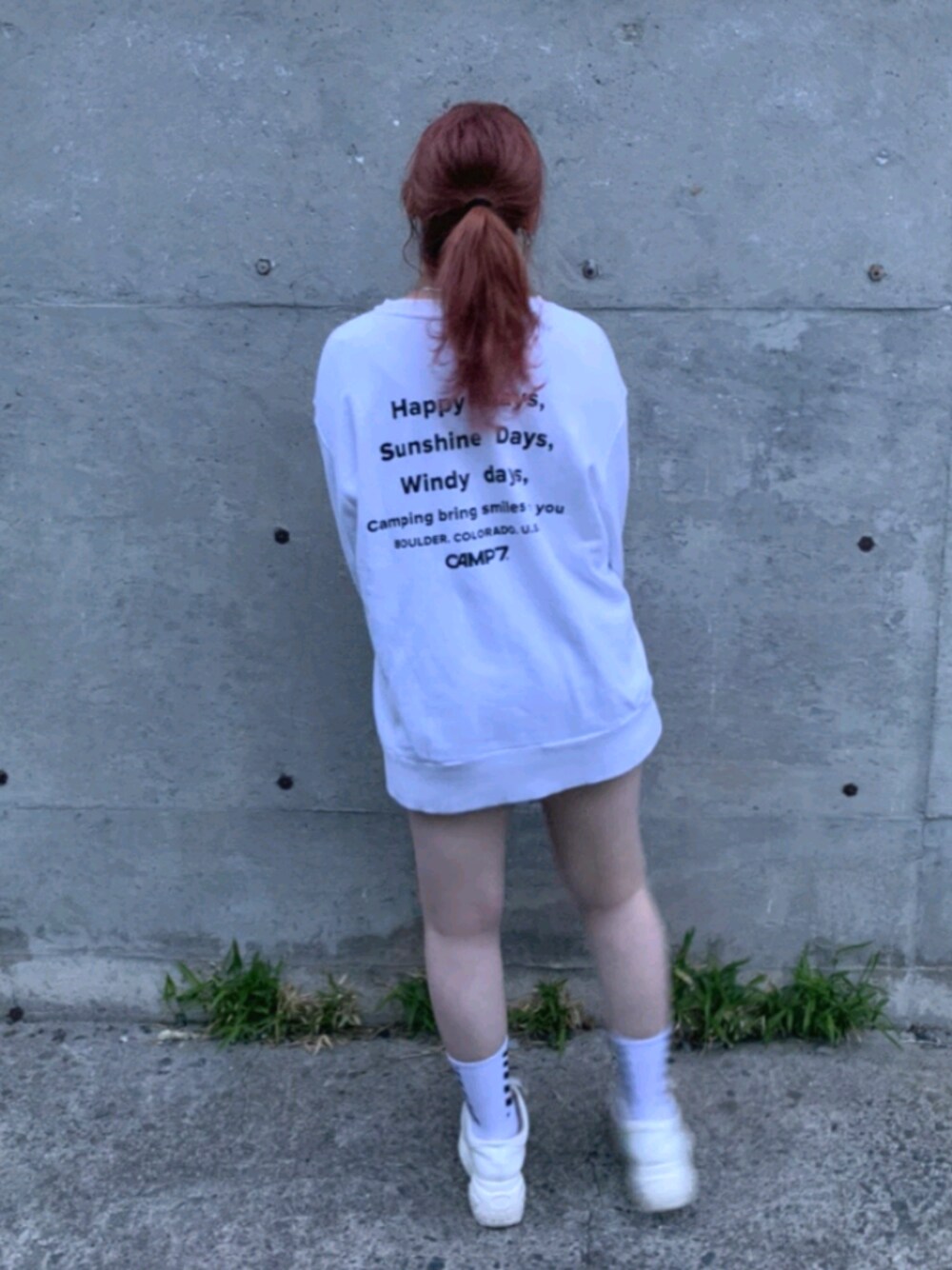 camp7のトレーナーです! バッグプリントの可愛さ伝われ〜。笑 (祈…) · · · 肌寒い日はトレーナーかパーカーしか着てない気がする🤔 オールホワイトコーデです❤︎