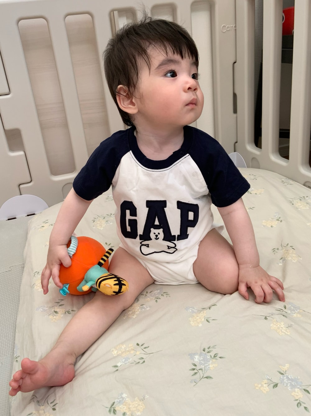 ラグラン袖とGAPのロゴがカジュアルな感じでかわいい〜。