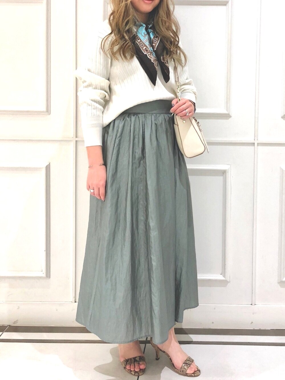 S A R A(ピシェ アバハウス ルクア大阪店)のスカート「ダイヤモンドワッシャーギャザースカート」を使ったコーディネート