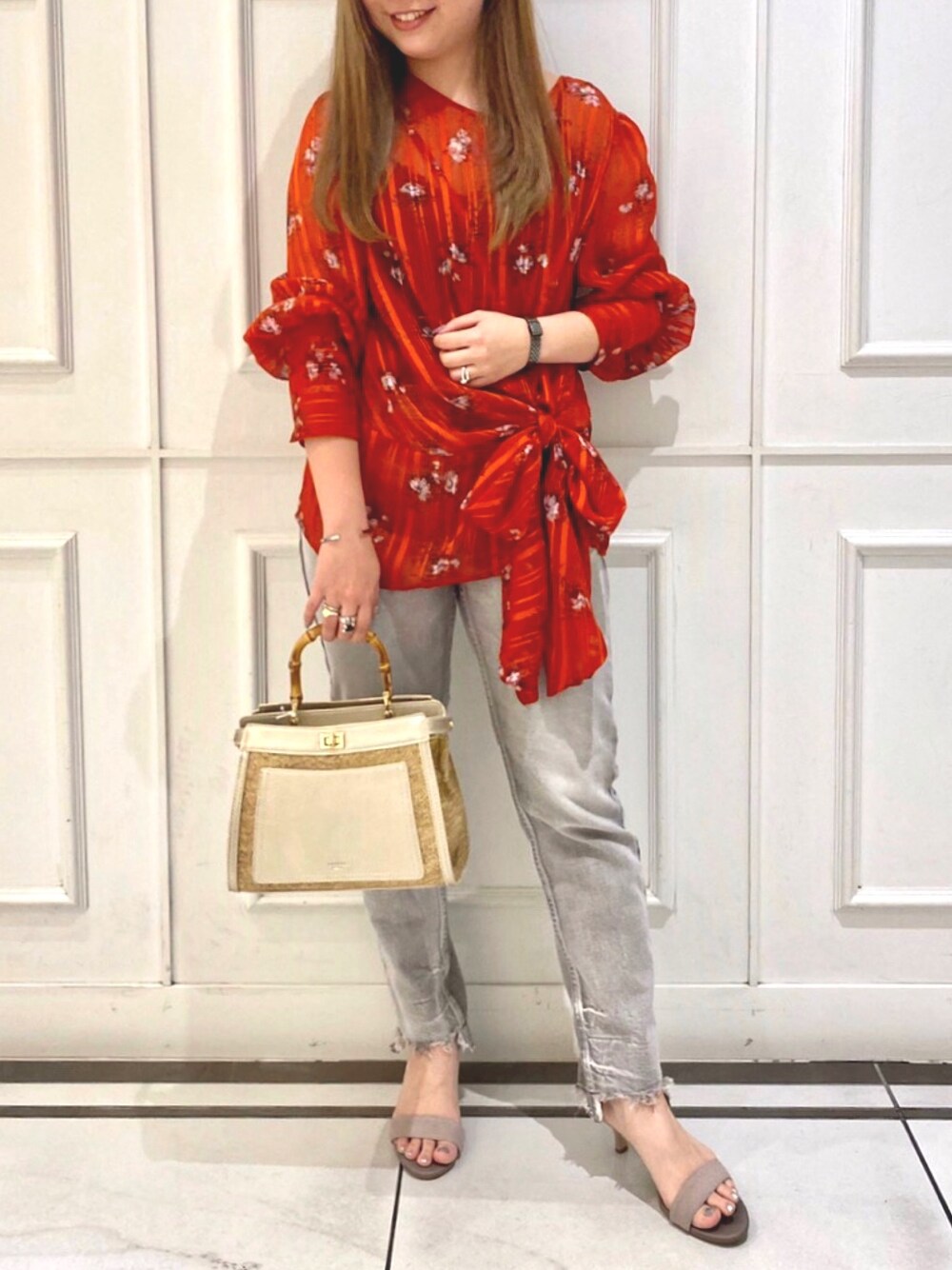 🌹🥀🌷 色ものは着ていて テンション上がりますよね?? ウエスト部分のリボンで 骨盤の張りを隠せるので大好きなブラウス❤️