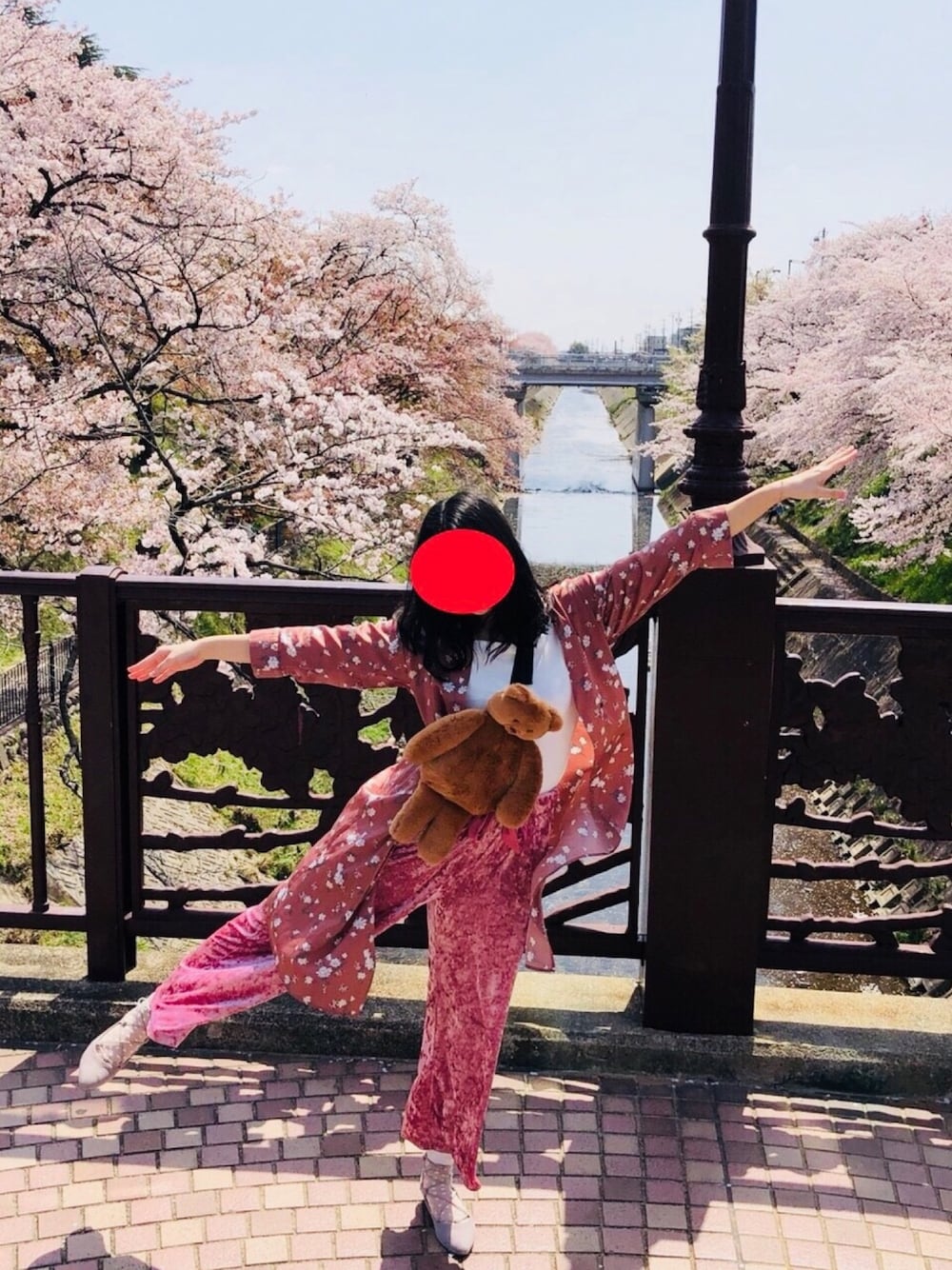 今更ですが、桜祭りに行った時🌸 パンツはGUのルームウェアを外着にしてしまいました。 近所をお散歩という感じのゆるっとしたコーデです。