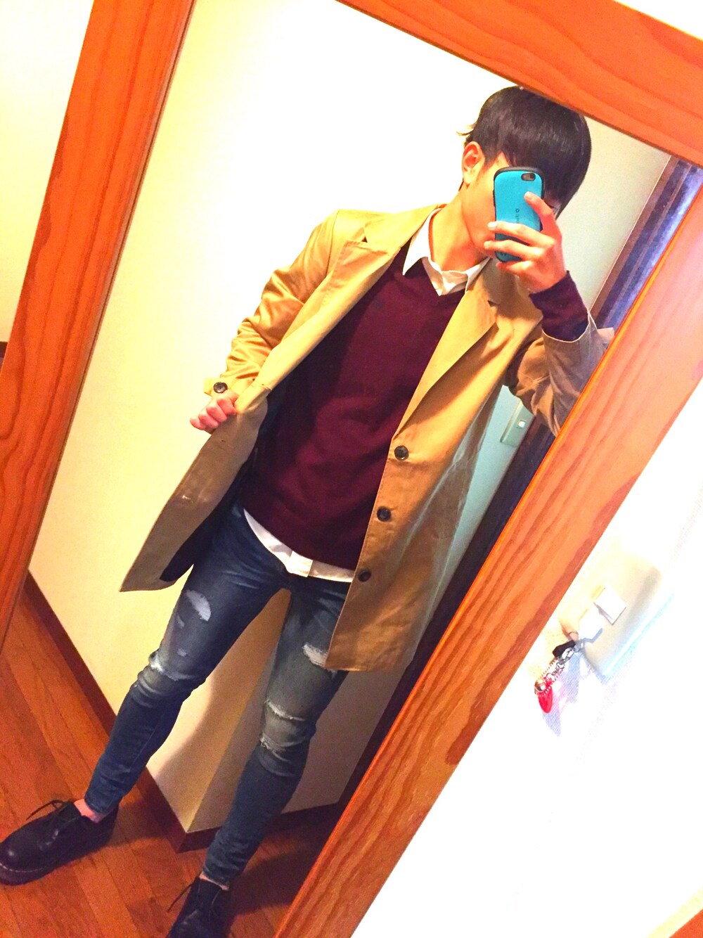 初投稿 写真の下手くそさが目立つ。。 コートにダメージジーンズも悪くない🤓 靴下履いてません。。。。笑 みなさんフォローよろしくお願いします!