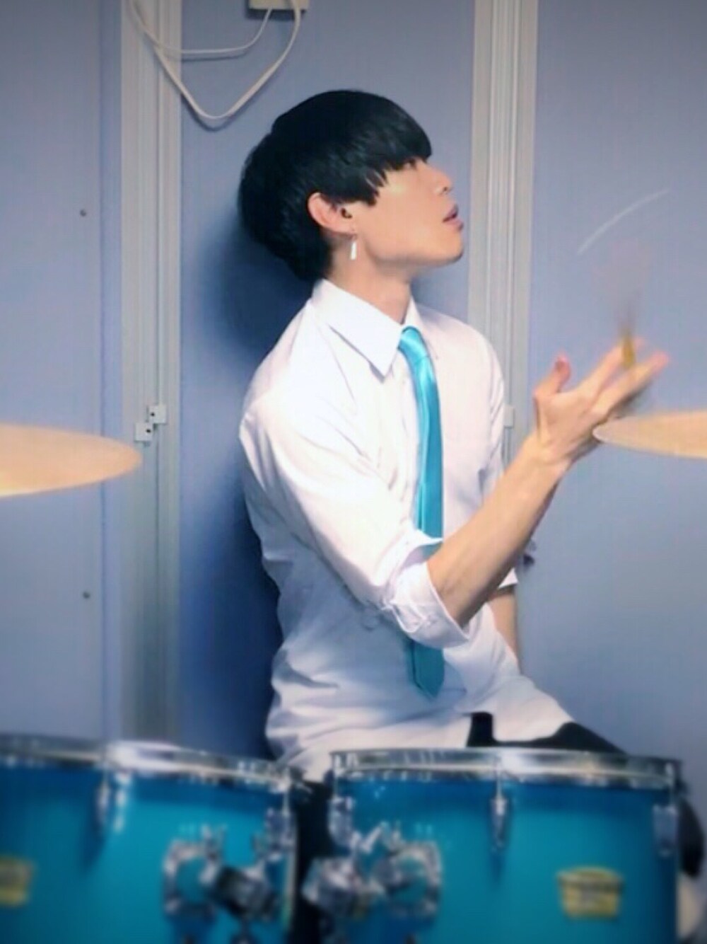 閲覧頂きありがとうございます😳 久々のネクタイコーデでした😍 白ベースに水色のネクタイとドラムがマッチ😘 次のライブもこの衣装でいきます。